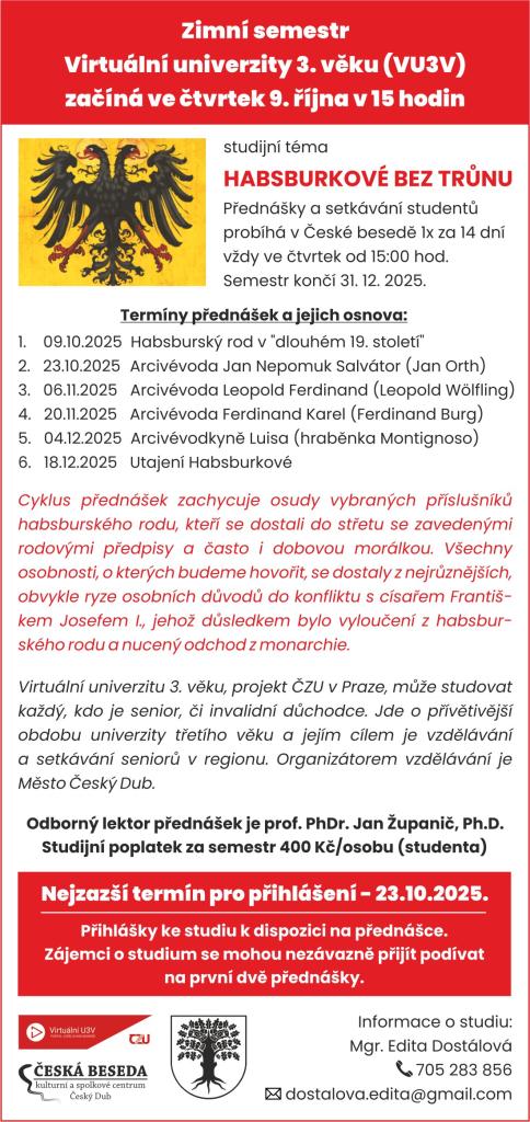 Virtuální univerzita 3. věku - téma: Habsburkové bez trůnu
